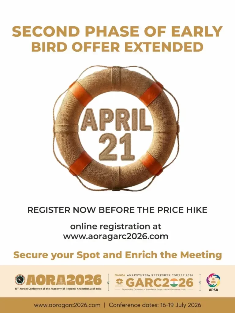 Come July 2026, Coimbatore will witness the exciting convergence of two of India’s most esteemed anaesthesia conferences: the Ganga Anaesthesia Refresher Course (GARC) and the Academy of Regional Anaesthesia (AORA).